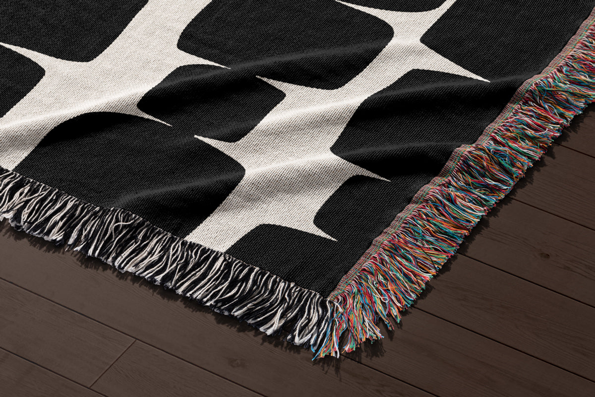 Mid Century Modern Black and White Woven Blanket - Minimalist Geometric Bedspread for Cozy Homes