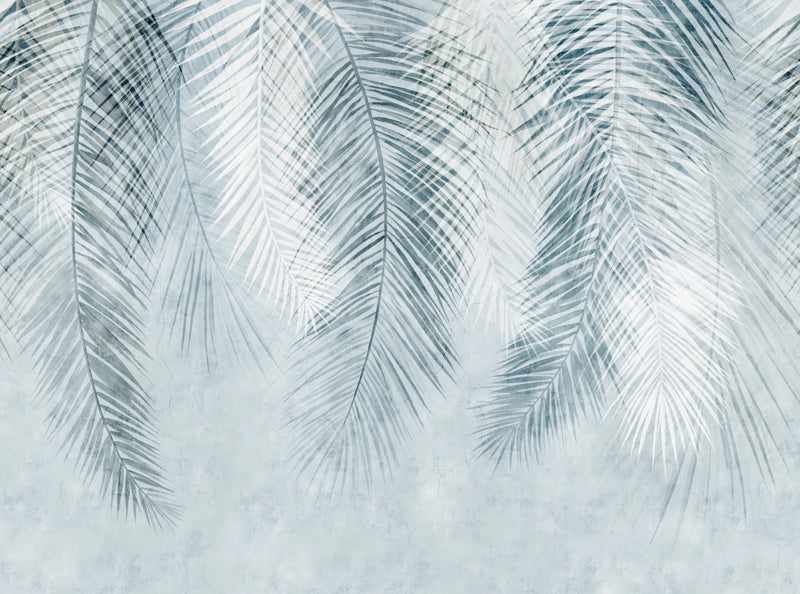 Channel island vibes with our captivating vintage blue palm leaf wallpaper!